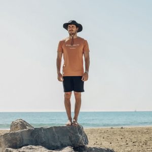 מתוך רצון להציע מוצר ידידותי יותר לסביבה, אנחנו מפתחים מדי שנה קולקציה קטנה בלבד. החולצות מורכבות אצל השותפים שלנו באי מאוריציוס, מבד כותנה מקומי.